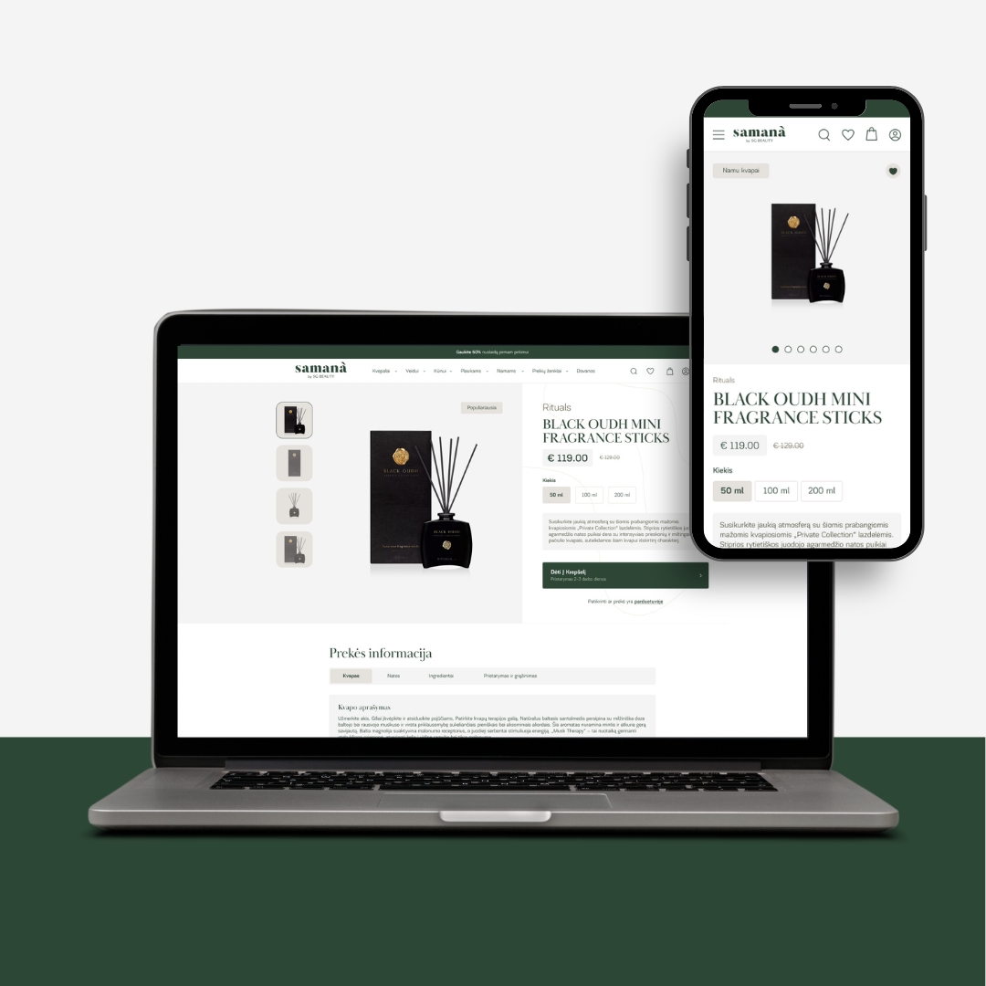 Elektroninės parduotuvės projektas, kuriame sujungti unikalūs dizaino sprendimai ir pilnai įgyvendinta PrestaShop sistema su verslo procesų integracijomis. Platforma vystoma ir toliau, atsižvelgiant į augančius verslo poreikius.